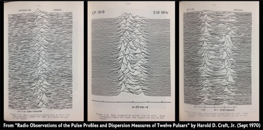 Po kilku latach Peter Saville wykorzystał znalezioną w Encyklopedii Astronomii Uniwersytetu Cambridge grafikę, delikatnie zmodyfikował, a następnie umieścił na okładce debiutanckiego album Joy Division – Unknown Pleasures.